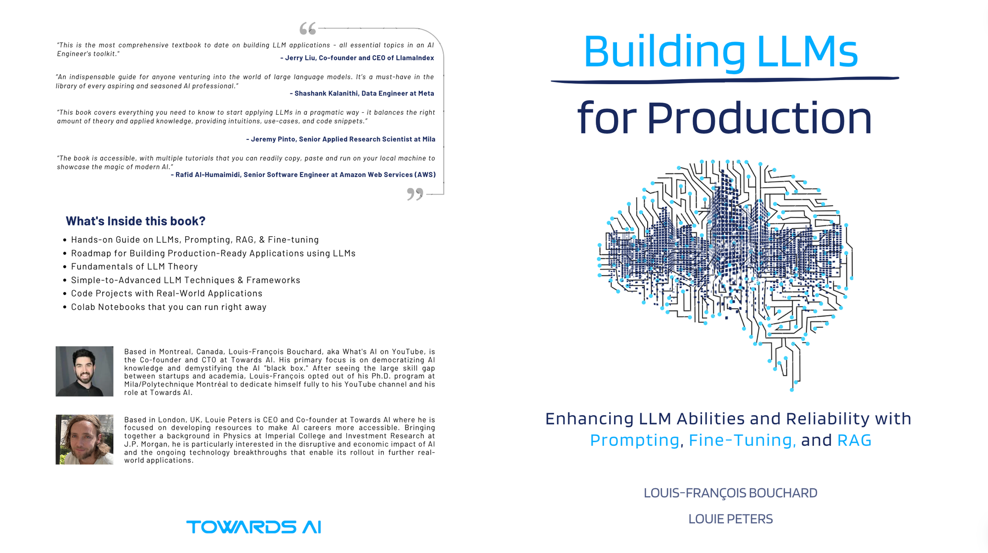 - Towards AI’s new book; Building LLMs for Production: Enhancing LLM Abilities and Reliability with Prompting, Fine-Tuning and RAG