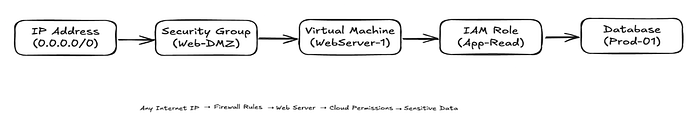 - Hidden Attack Paths: Attackers exploit chains of relationships. For example, a publicly exposed VM might lead to a database through a series of roles and permissions.