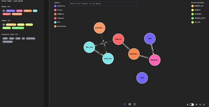 This query finds all non-encrypted databases that dev-user-1 can access through any number of group memberships and role assumptions. It’s a powerful example of how a single query can reveal complex permission chains, a key function of CSPM.